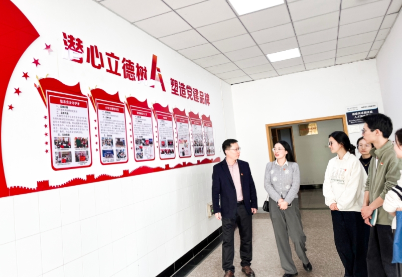 園區(qū)黨員代表在周主任和王院長(zhǎng)的陪同下參觀了學(xué)校校史館,深入了解了商貿(mào)學(xué)院的創(chuàng)立背景、發(fā)展歷程、教育教學(xué)成果以及社會(huì)影響力等方面的內(nèi)容,校史館充分展現(xiàn)了學(xué)校的辦學(xué)理念、悠久的歷史積淀和豐富的文化底蘊(yùn)。隨后參觀了信息與人工智能學(xué)院教學(xué)樓和教學(xué)設(shè)施,了解了學(xué)院的榮譽(yù)歷程、師資團(tuán)隊(duì)以及黨支部多種多樣的黨建活動(dòng)。