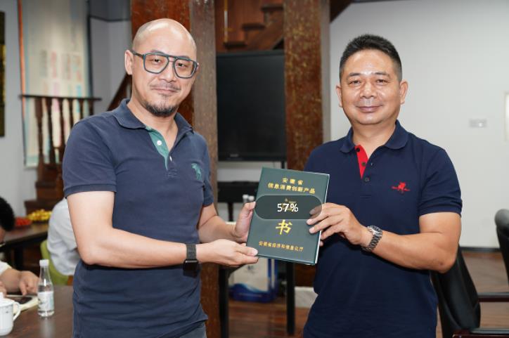 會議開始前,鏡湖區(qū)經(jīng)信局局長方仲明向企業(yè)授予安徽省第七批信息消費創(chuàng)新產(chǎn)品證書。